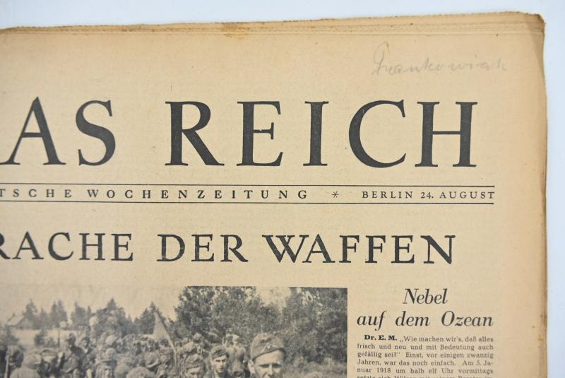 In a nice used condition a German Newspaper “Das Reich” dated August 1941. The paper comes with a very nice header.