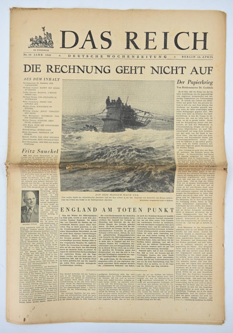 In a nice used condition a German Newspaper “Das Reich” dated April 1942 The paper comes with a very nice header.