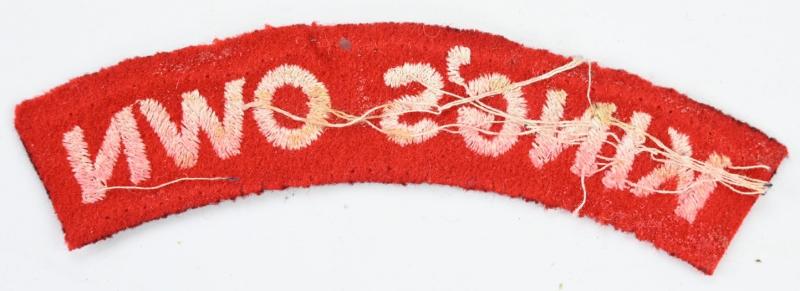 In a very nice condition a British WW2 King's Own Royal Lancaster Regiment Cloth Shoulder Title. The title is clearly tunic removed.