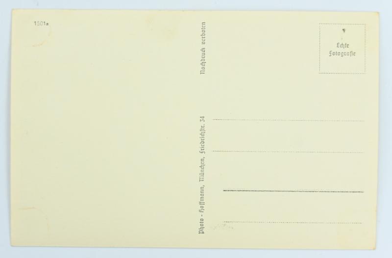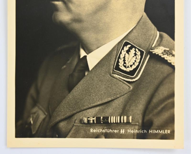 In a very good condition a German Postcard of 'Reichsführer-SS Heinrich Himmler'. The postcard photo is made by Photo Hoffmann from Munich. A very hard to find postcard!