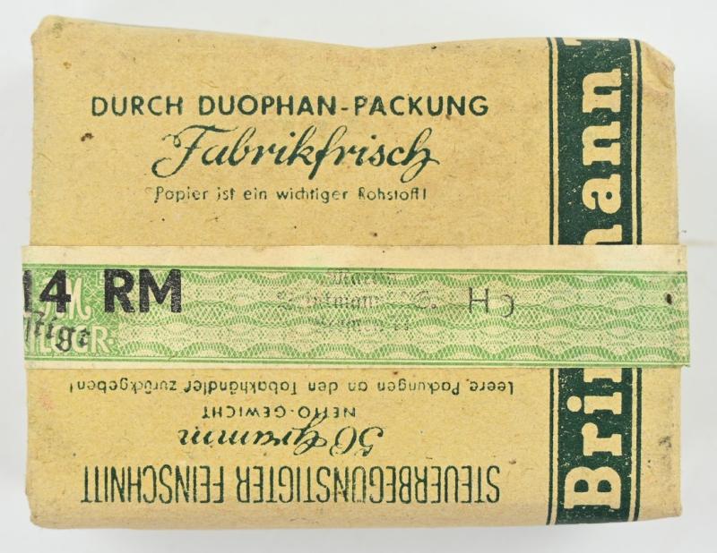 In a mint condition a German Third Reich Era Package of 50 gram Tabacco made by Martin Brinkmann K.G. Brehmen.