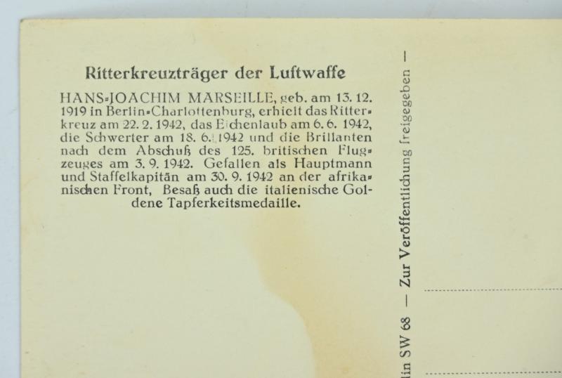 In a very nice condition a German Luftwaffe Portrait Picture of Hauptmann ''Hans-Joachim Marseille'. The portrait picture comes in a postcard size.