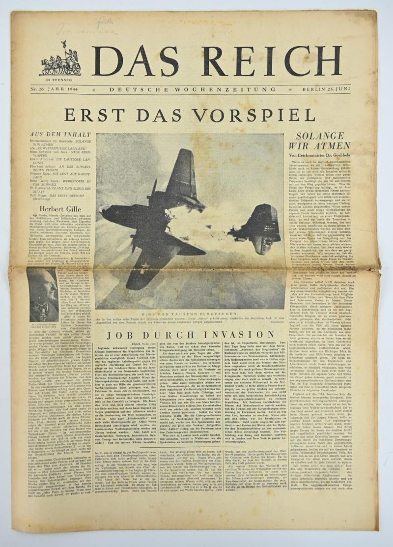 In a nice used condition a German Newspaper “Das Reich” dated Juen 1944 The paper comes with a very nice header.