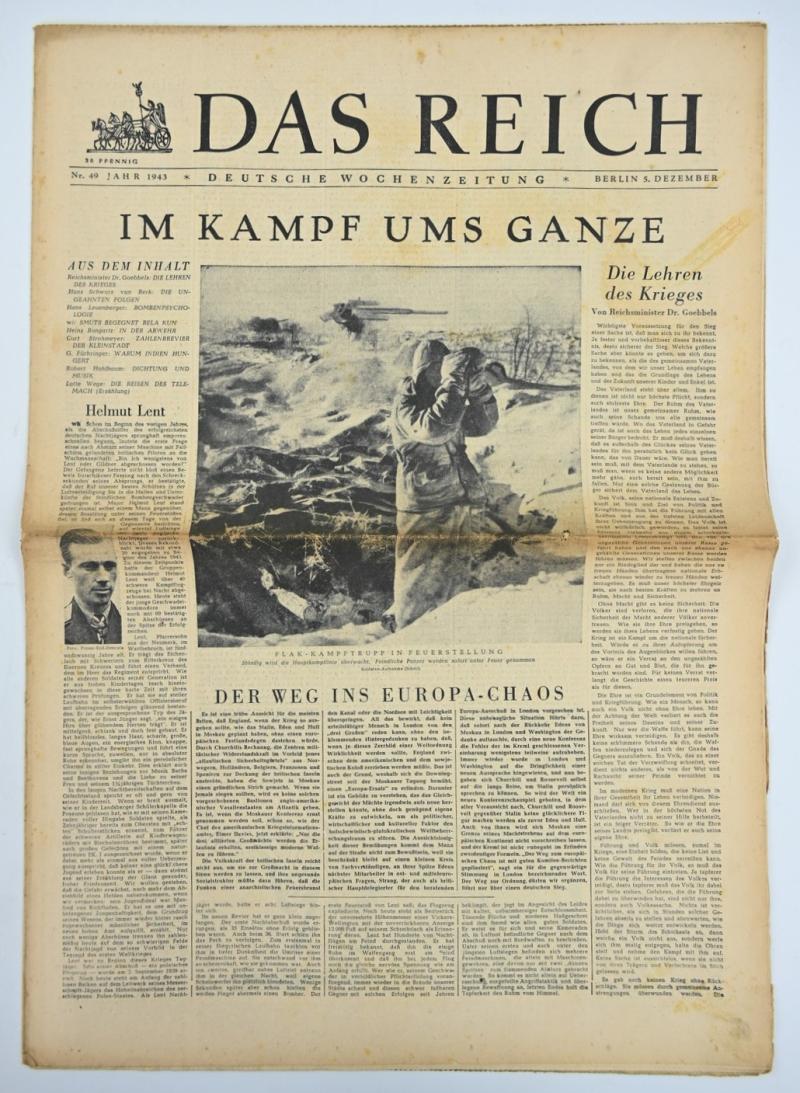 In a nice used condition a German Newspaper “Das Reich” dated December 1943. The paper comes with a very nice header.