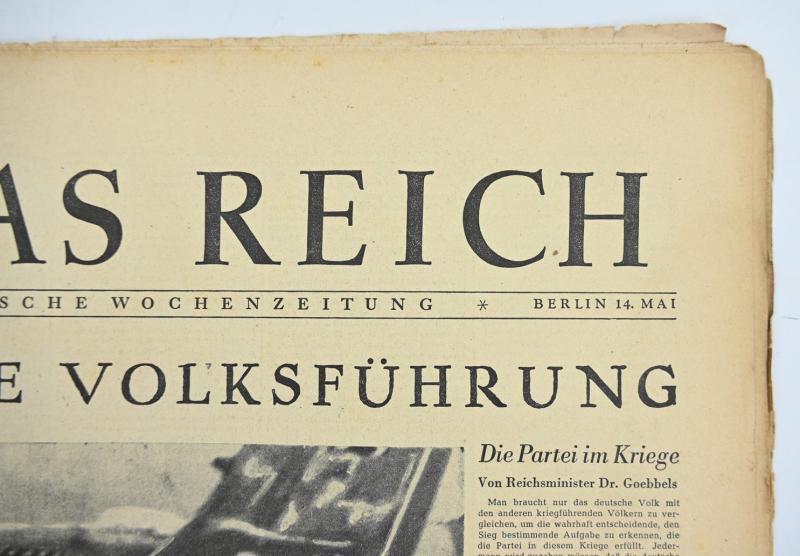 In a nice used condition a German Newspaper “Das Reich” dated May 1944. The paper comes with a very nice header.