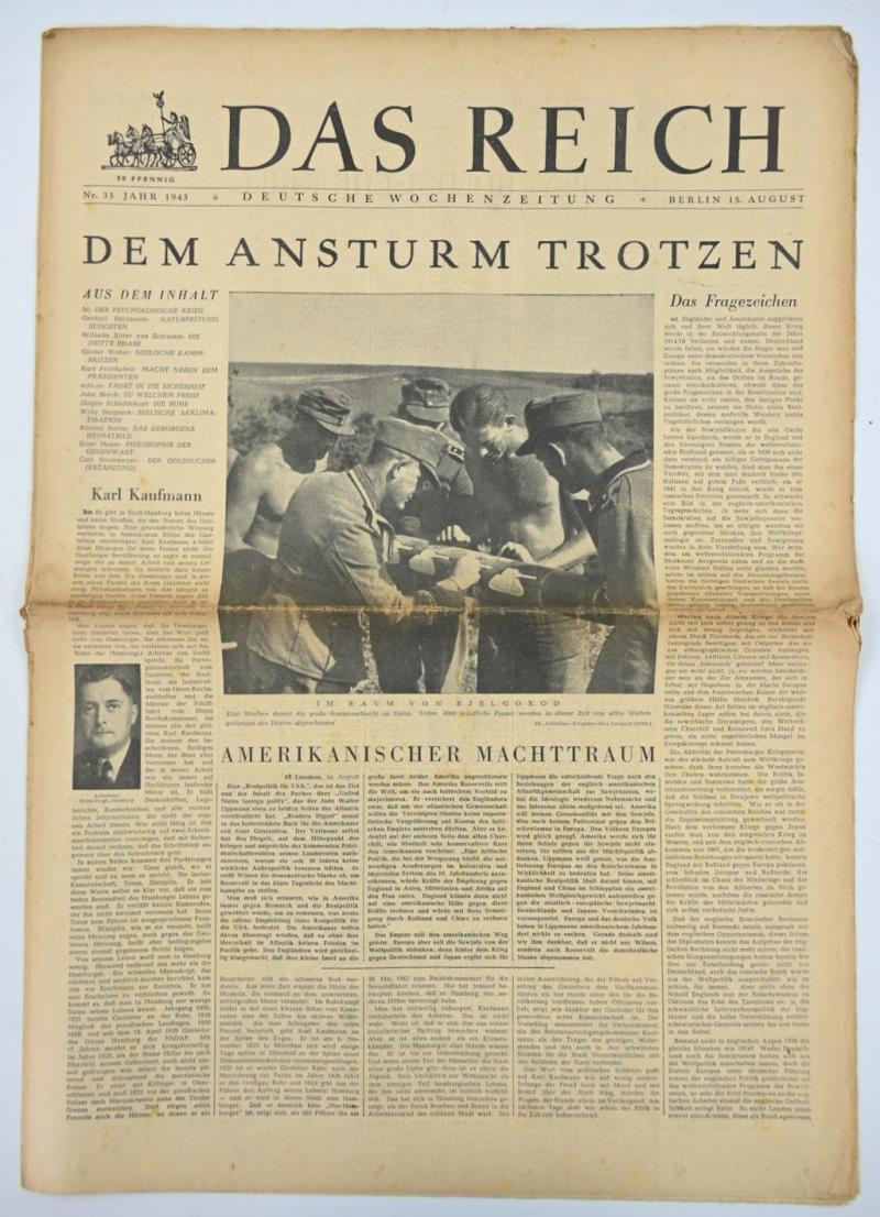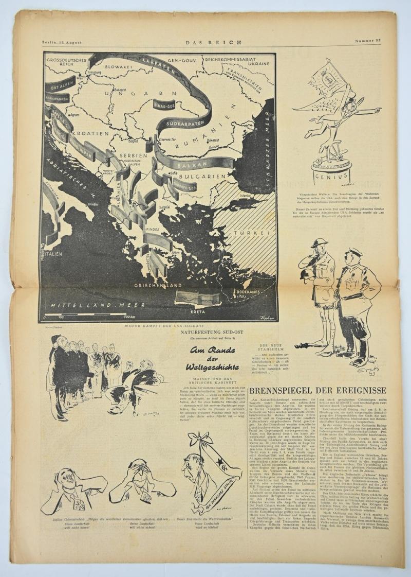 In a nice used condition a German Newspaper “Das Reich” dated August 1943. The paper comes with a very nice header.