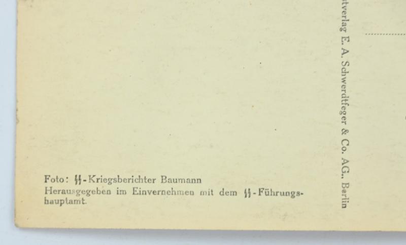 In a very good condition a German Waffen-SS Kriegsberichter Postcard. The postcard is from the serie 'Unsere Waffen-SS' . A very nice SS picture on the postcard!