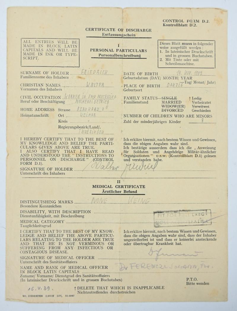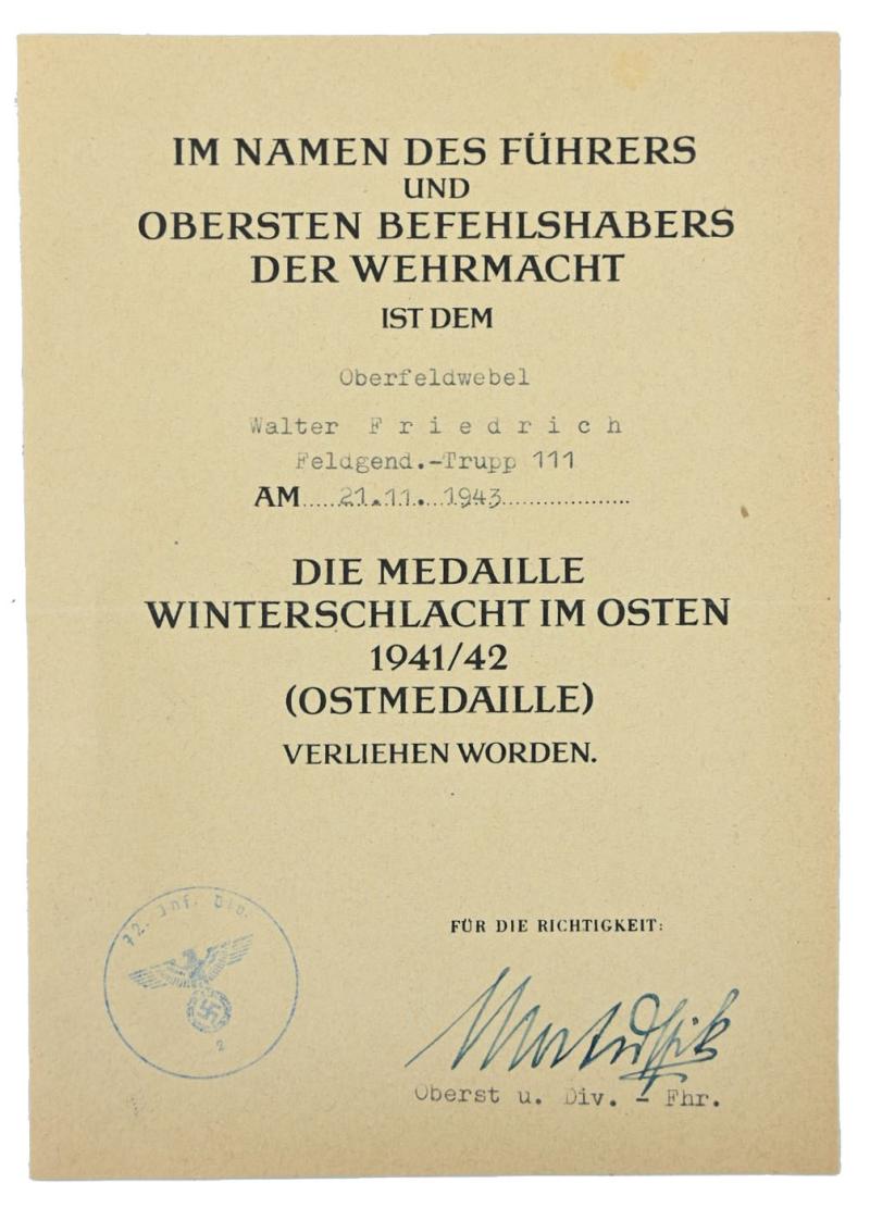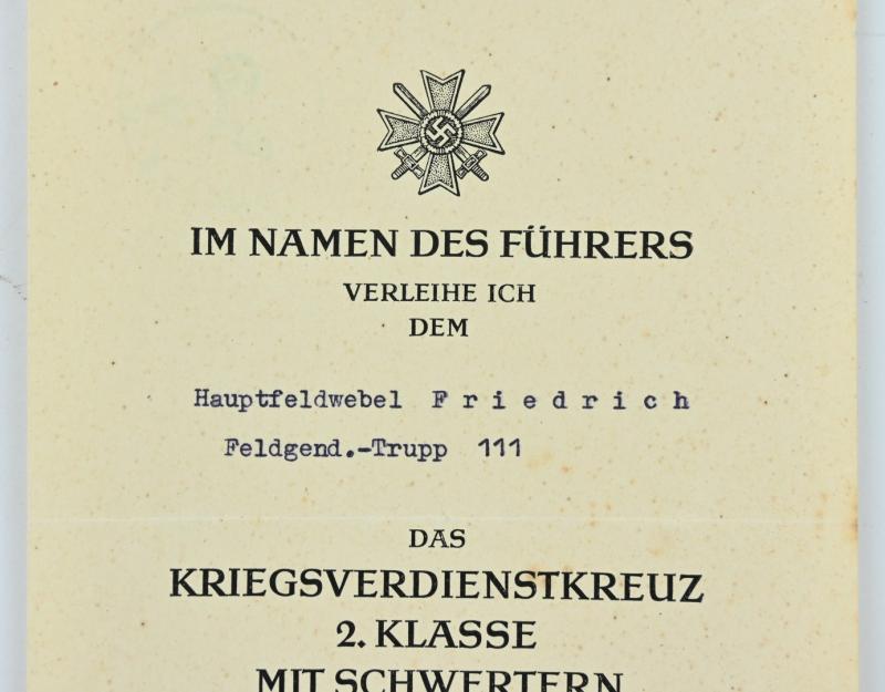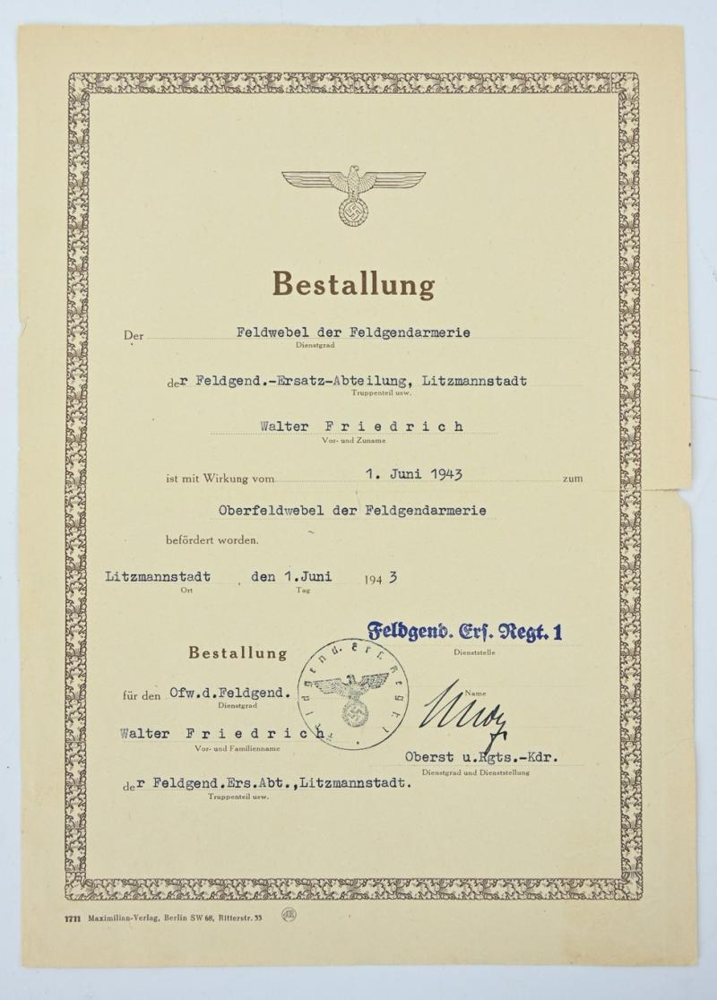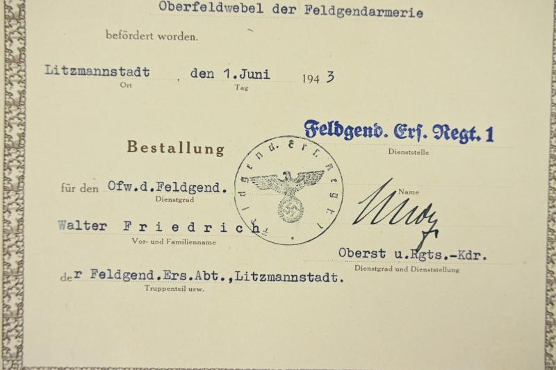 In a very good condition a German Wehrmacht Feldgendarmerie grouping on the name of Hauptfeldwebel Friedrich, member of the Feldgendarmerie-Trupp 111.