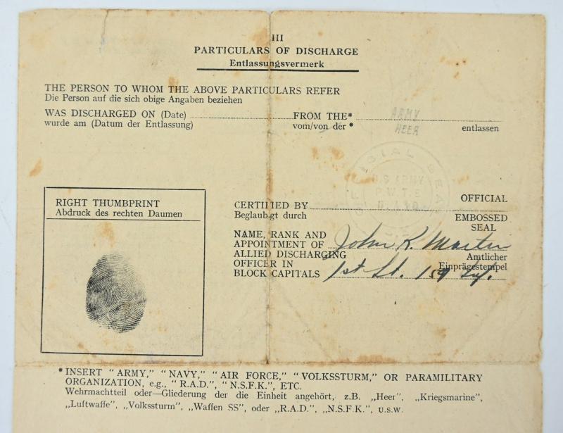 The grouping contains his award documents, picture with his wife and certificate of discarge as a prisoner of war.