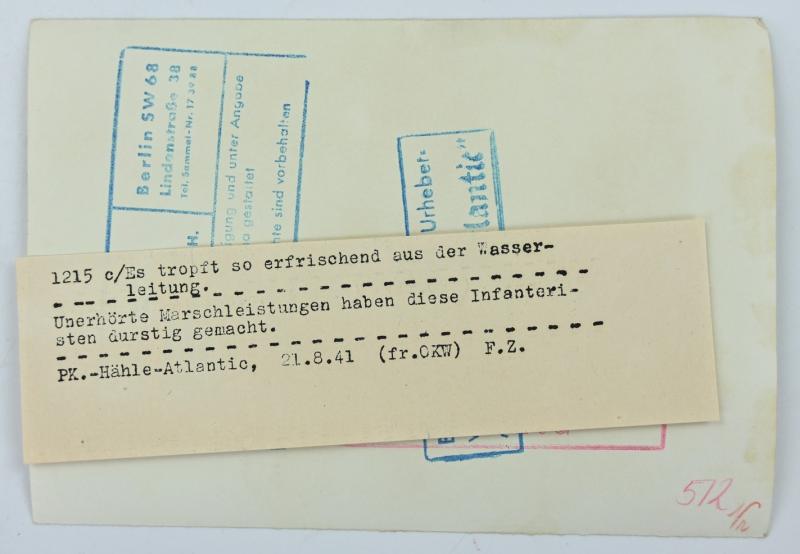 In a very nice condition a German Wehrmacht Press Photo of soldiers at rest / drinking brake. The picture is dated 1941 and comes in a size of approx 10x15cm.
