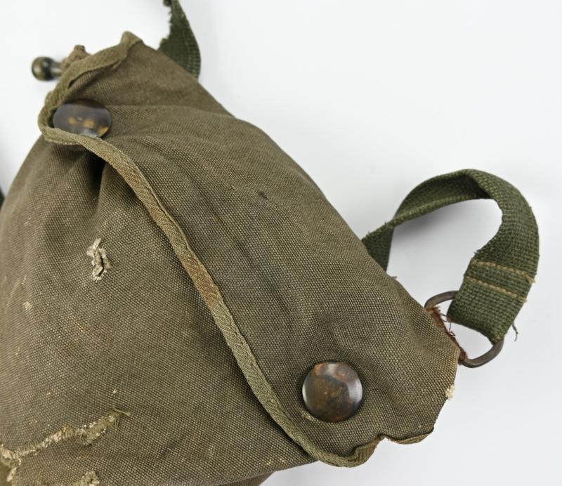 In a used condition a rare German Luftwaffe late war Fallschirmjäger Gasmask bag with gasmask.