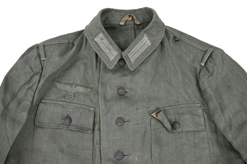 In a stunning mint condition a German Wehrmacht (Heer) M43 HBT (Drillich) Combat Tunic.
