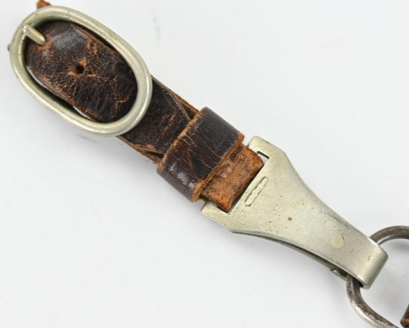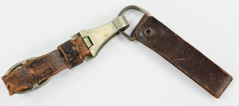 In a very good condition a German SA Sturmabteilung M33 dagger hanger. The hanger is complete with the snaphook and belt loop in the brown leather. A very nice hanger to complete your dagger!