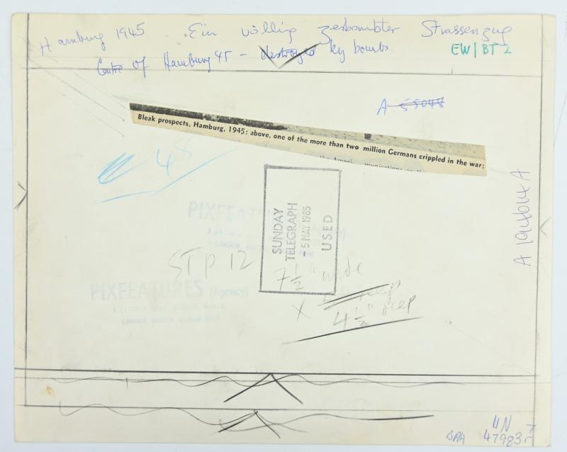 In a nice used condition a Allied WW2 Press Photo of Hamburg in Ruines after the defeat of the Third Reich. The picture comes in a size o approx 15x18cm.