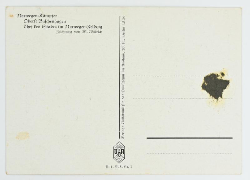 In a very nice condition a German Wehrmacht (Heer) Postcard of Oberst Buschenhagen. The postcard is from the Willrich Serie.