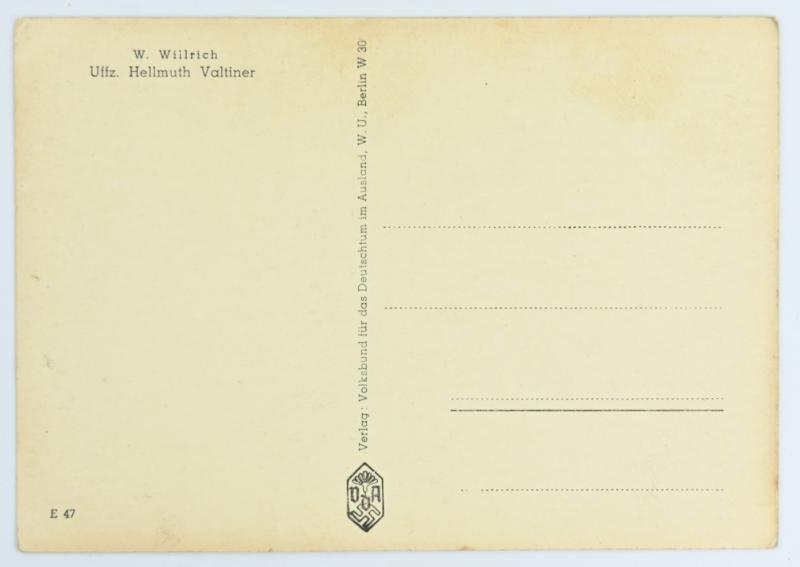 In a nice condition a German 'Willrich' period picture-postcard from the famous 'Ritterkreuzträger'-series depicting the: Uffz. Hellmuth Valtiner, in overall very nice condition.