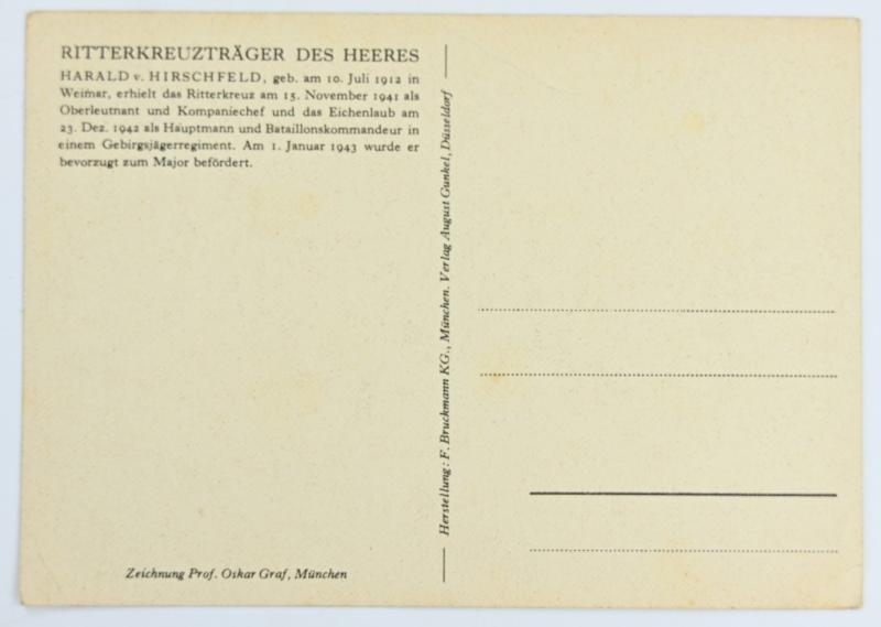 In a nice condition a German 'Willrich' period picture-postcard from the famous 'Ritterkreuzträger'-series depicting the: 'Harald van Hirschfeld', in overall very nice condition.