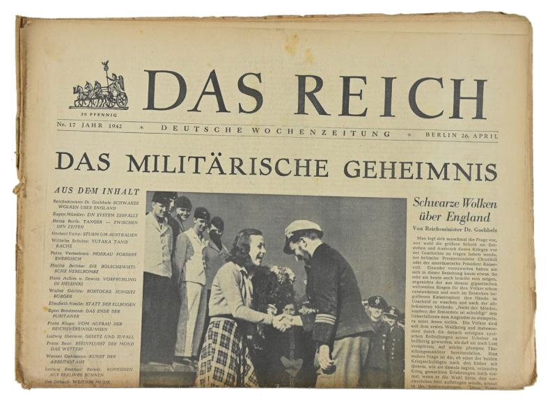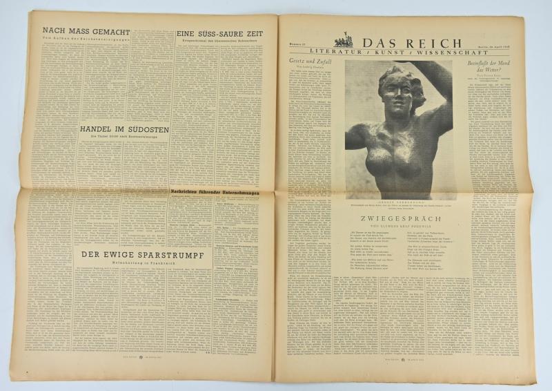 In a nice used condition a German Newspaper “Das Reich” dated April 1942 The paper comes with a very nice header.