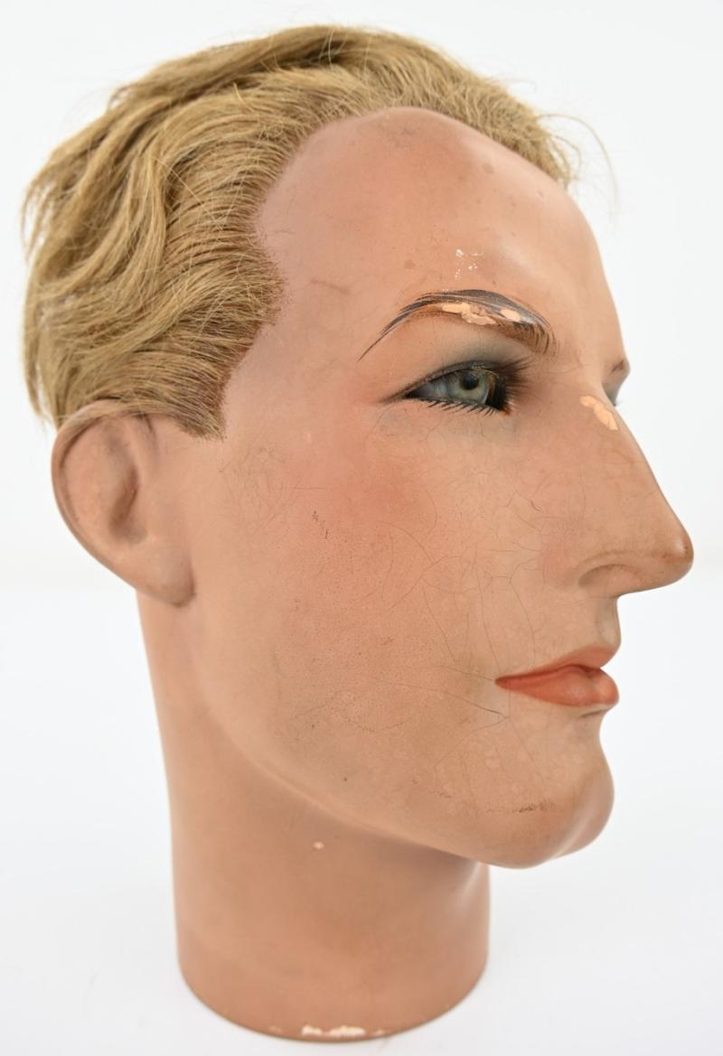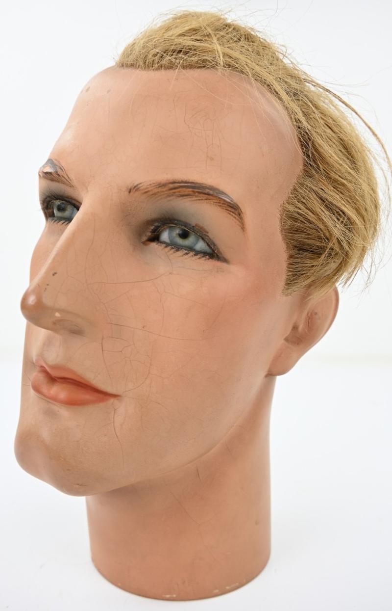 In a very nice condition a vintage Male Mannequin Head. The head comes with hair and has a size of approx size 58. Nice vintage head for helmet or headgear use!