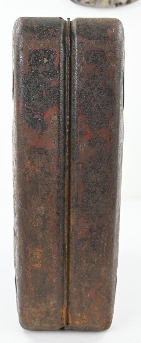 The jerrycan comes in the original blue paint and is nicely maker marked and has the text 'Kraftstoff 20L Feuergefahrlich 1940, Wehrmacht.