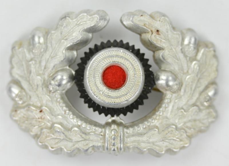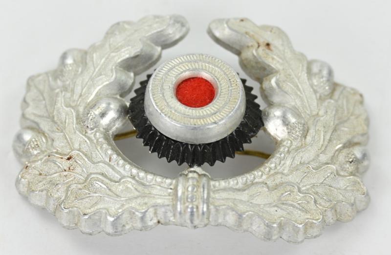 In a very good condition and never used a German Wehrmacht Visor Cap Kokarde. The kokarde comes in Aluminium and has still all three it's prongs on the reverse side.