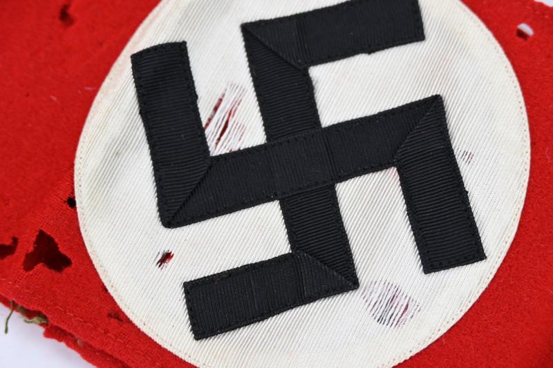 The early NSDAP period armband comes in red wool base with a black woven swastika in a white linnen centre.