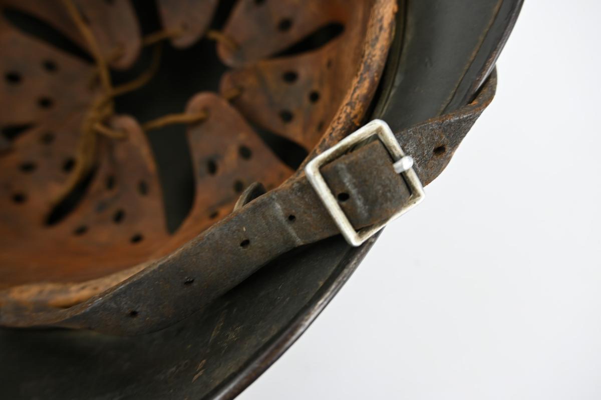 The helmetshell has the Wehrmacht decal for 95% condition and has the national 3-colour decal removed due to the 1940 issued rules to remove the decals.