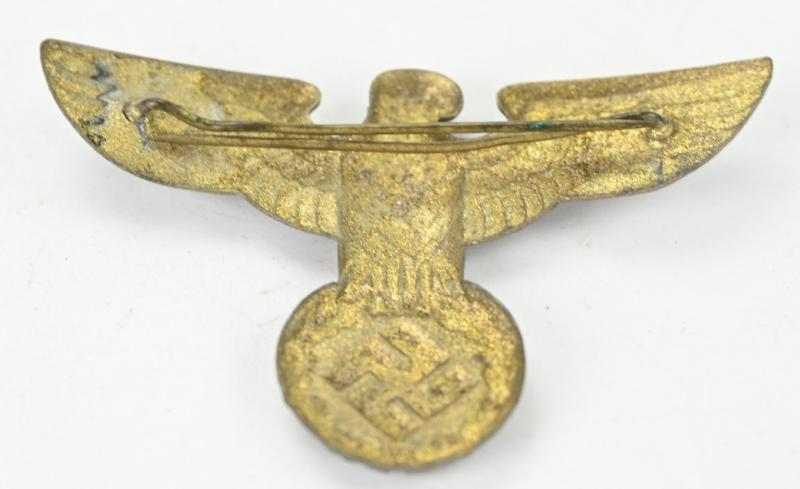 In a very nice condition a German NSDAP Political Visor Cap Eagle. The zinc made eagle comes with both prongs on the reverse side original attached.