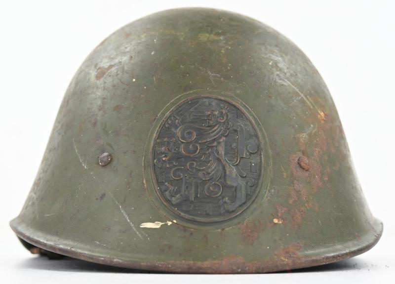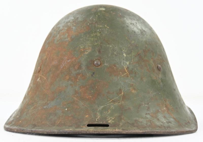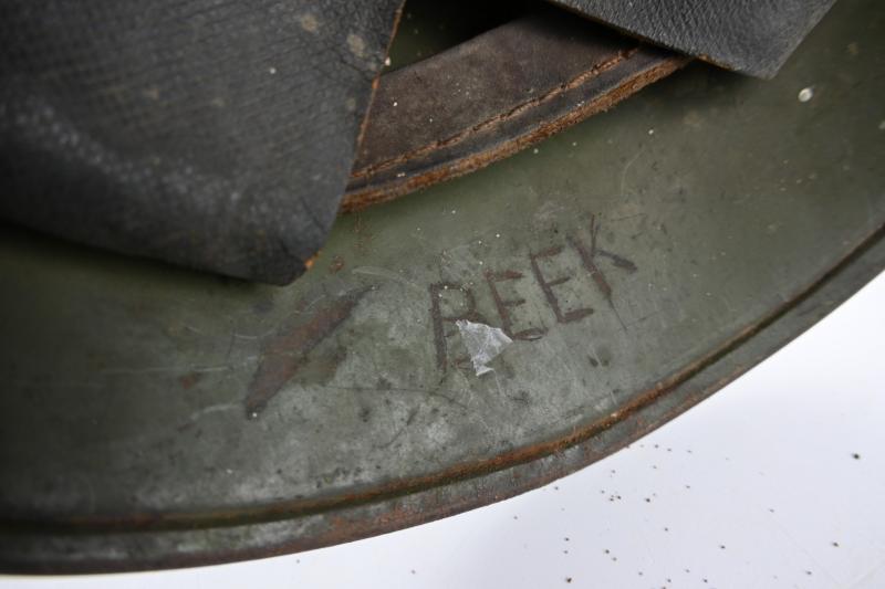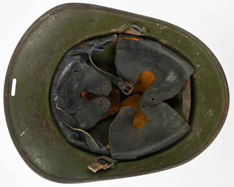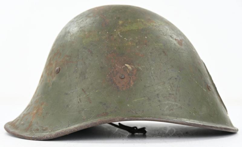 In a used condition and found in the USA as a souvenir of the war, a Dutch M27 Combat Helmet.