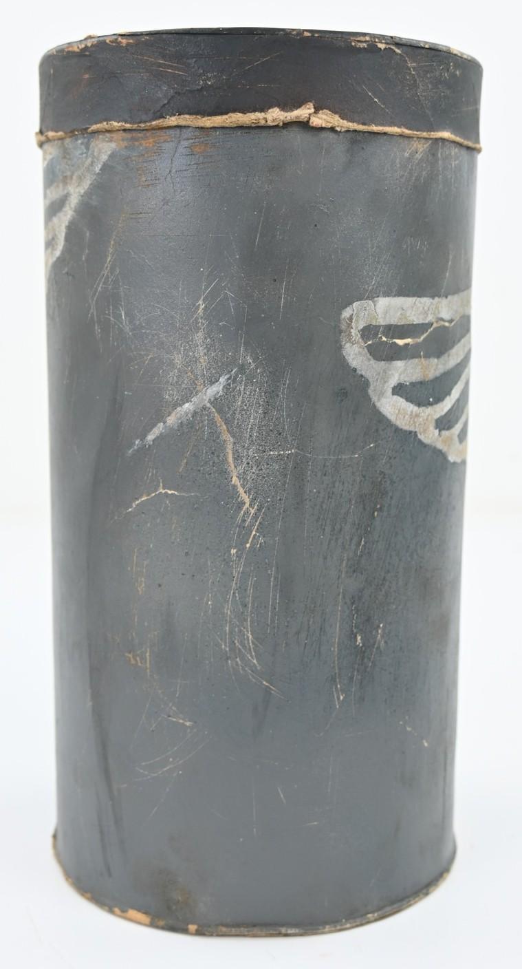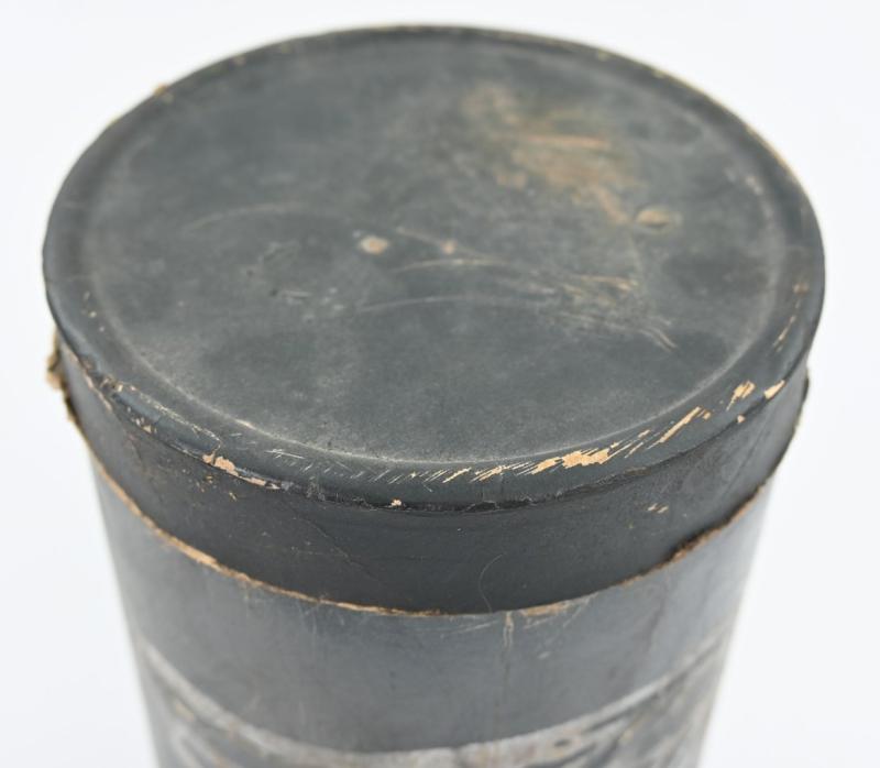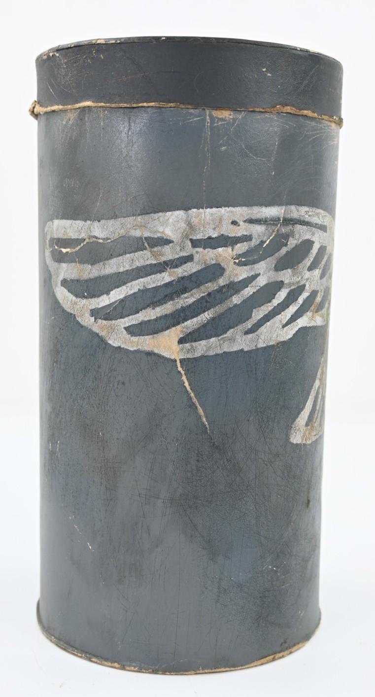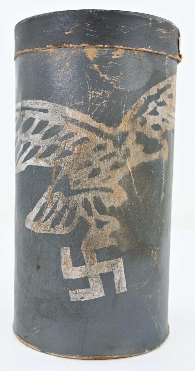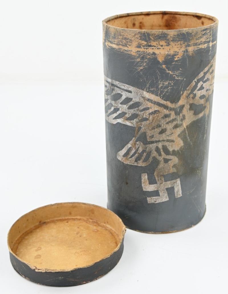 The container comes in a diamater of approx 15cm and is about 30cm high. Nicely made of carton and has on the side the Luftwaffe Eagle present.