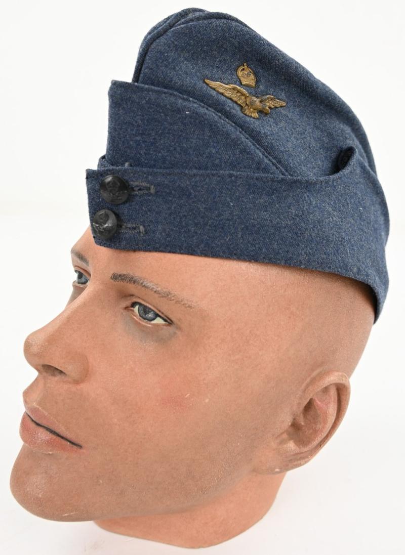 In a very good condition a British Ww2 Royal Air Force Side Cap. The side cap comes with the original insignia and is nicely maker marked on the inside and dated 1945. A very nice good mannequin head size cap.
