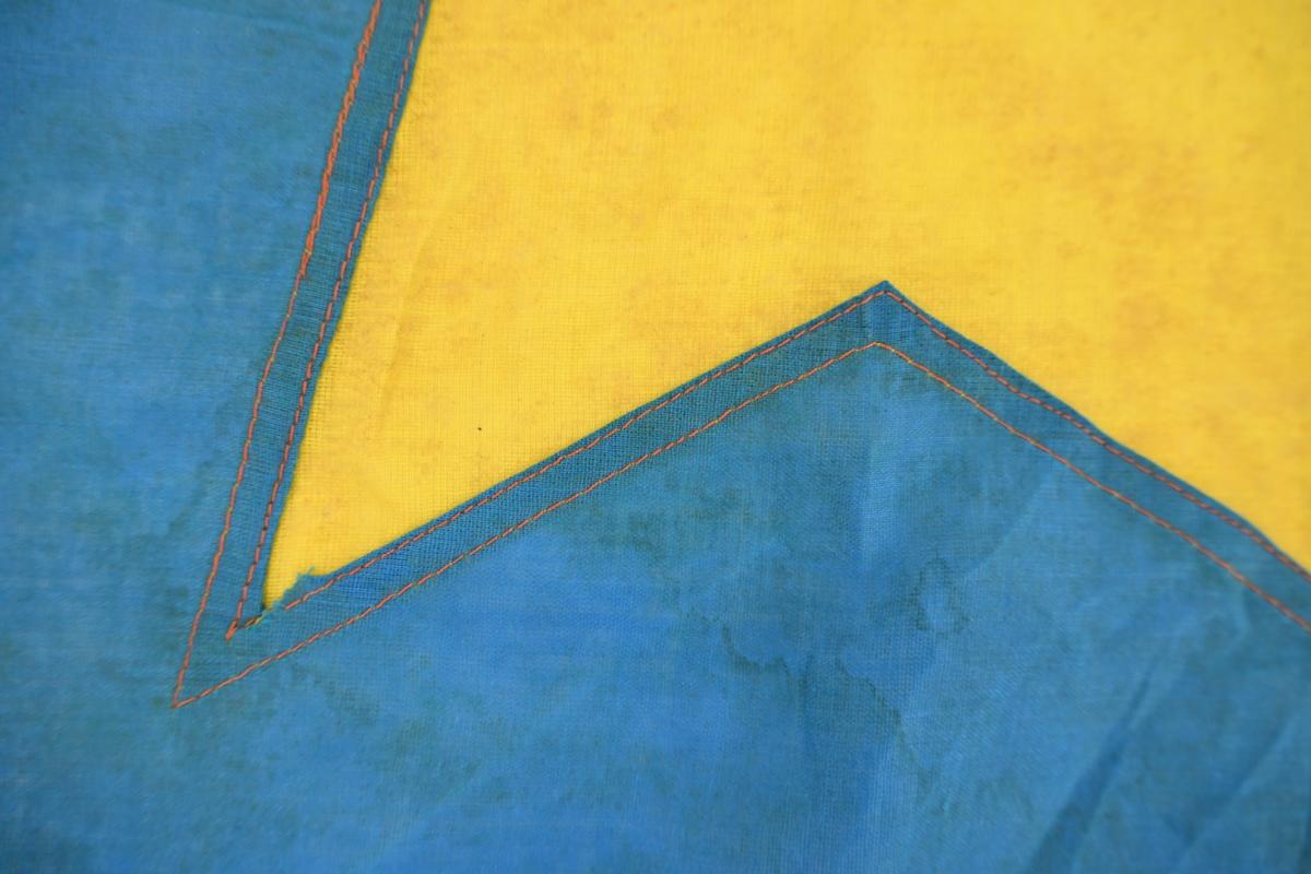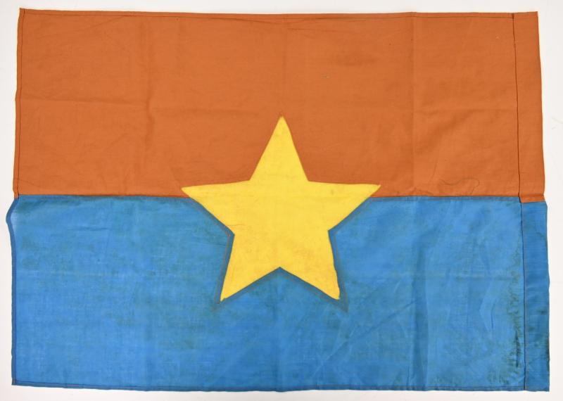 The red/blue linnen flag comes in a size of 54x76cm and has the communist yellow star original sewed in the middle of the flag.