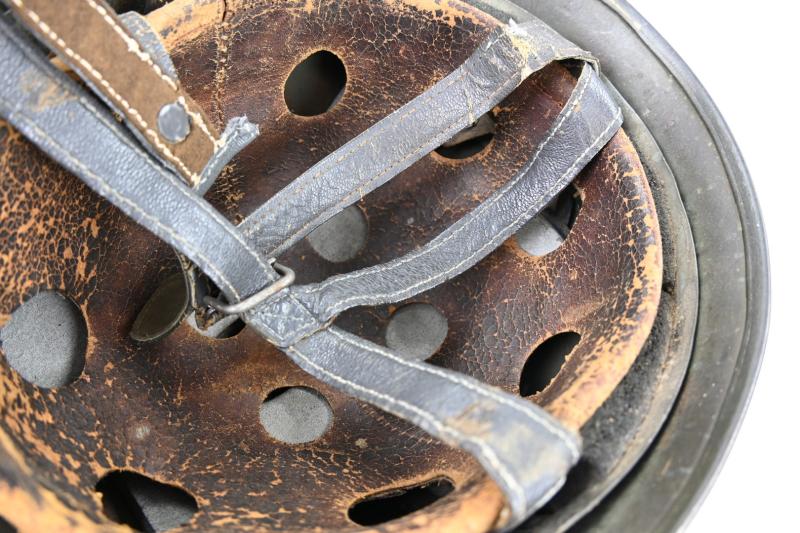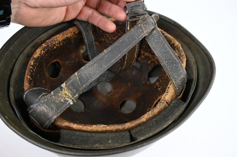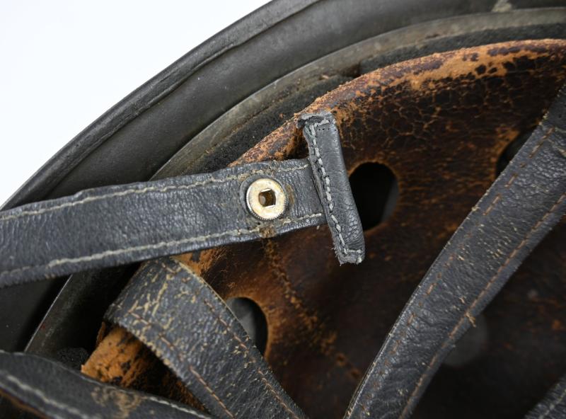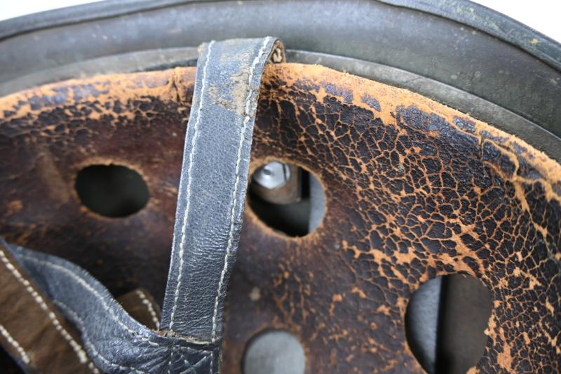 The helmet comes with the lining intact, padding, leatherwork and chinstraps. One chinstrap is replaced and has a repaired catch.