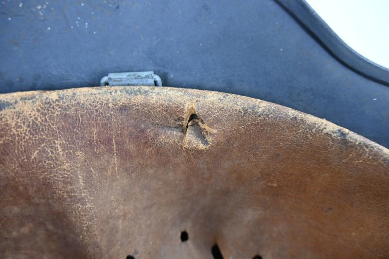 The zinc made liner is original attached to the helmet and never taken out.