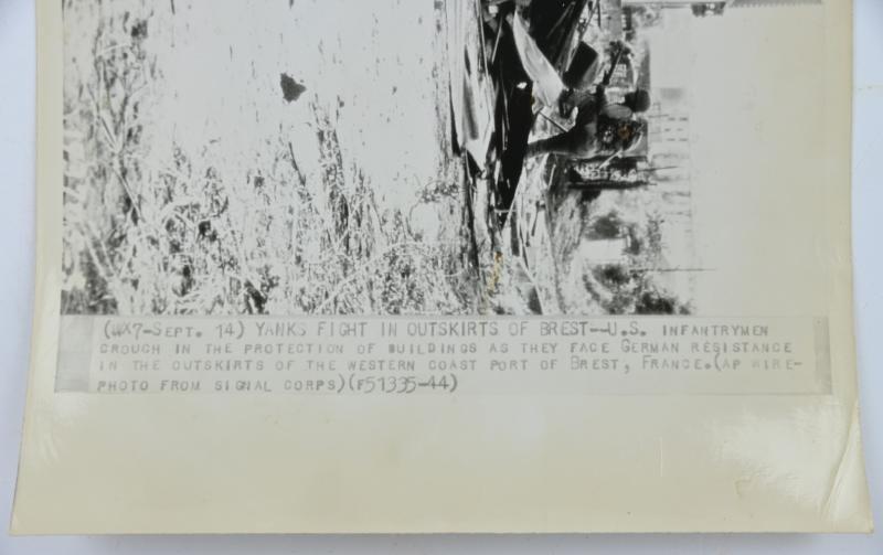 In a very good condition a US WW2 Radiophoto 'Yanks fighting in Brest'. The photo comes in a size of approx. 15x25cm and is dated September 1944.