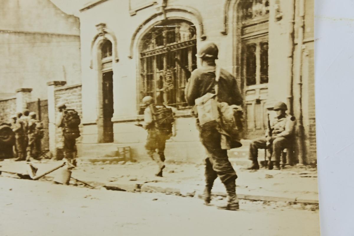 In a very good condition a stunning US WW2 Press Photo of combat actions in the town of 'La Haye du Puits' in the Normandy Peninsula.