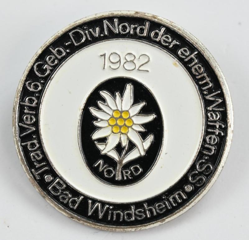In a very nice condition a set of German HIAG (Hilfsgemeinschaft auf Gegenseitigkeit der Angehörigen der ehemaligen Waffen-SS) Badge Set '6th SS Mountain Division Nord'