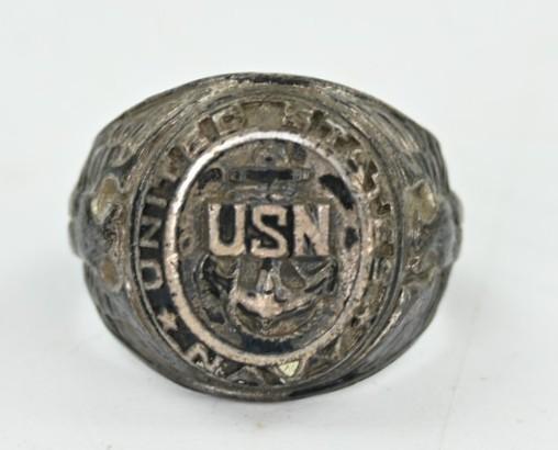 In a used condition a USN United States Nacy Ww2 Ring. The member ring comes in sterling silver and has no markings on the inside of the ring. It comes with traces of wear and age.