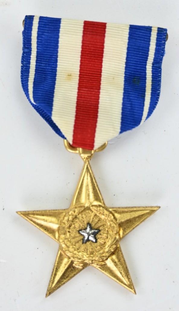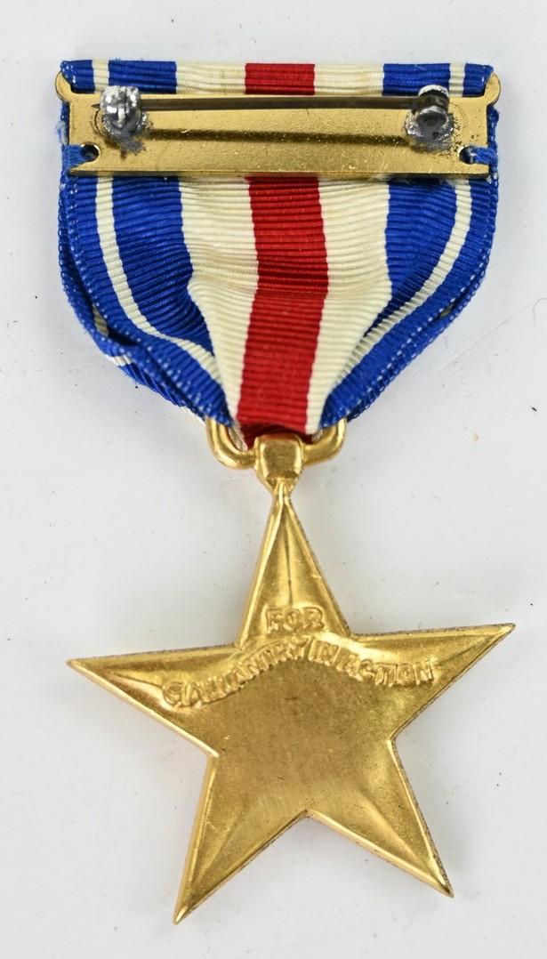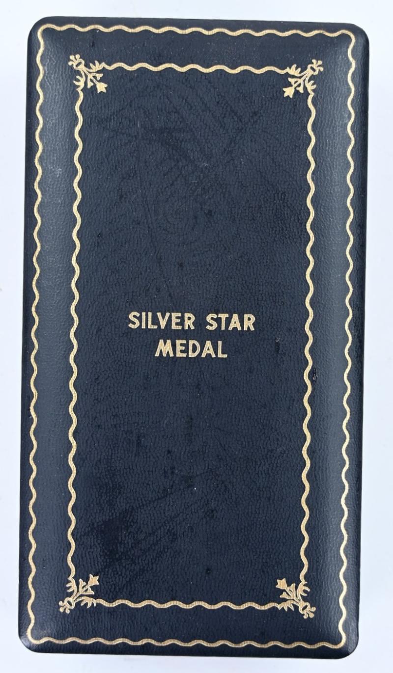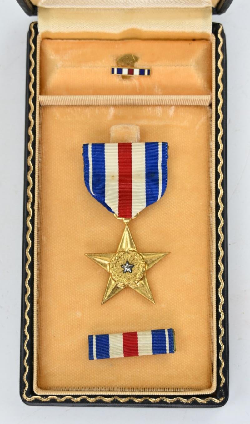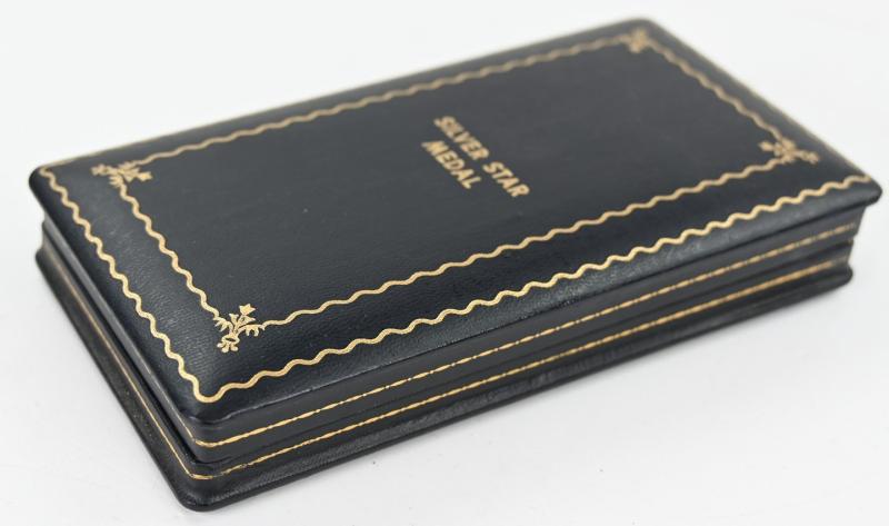 In a very good condition an US WW2 Silver Star medal set in Case. The set contains the medal, ribbonbar and also the buttonhole batton. A very nice set!