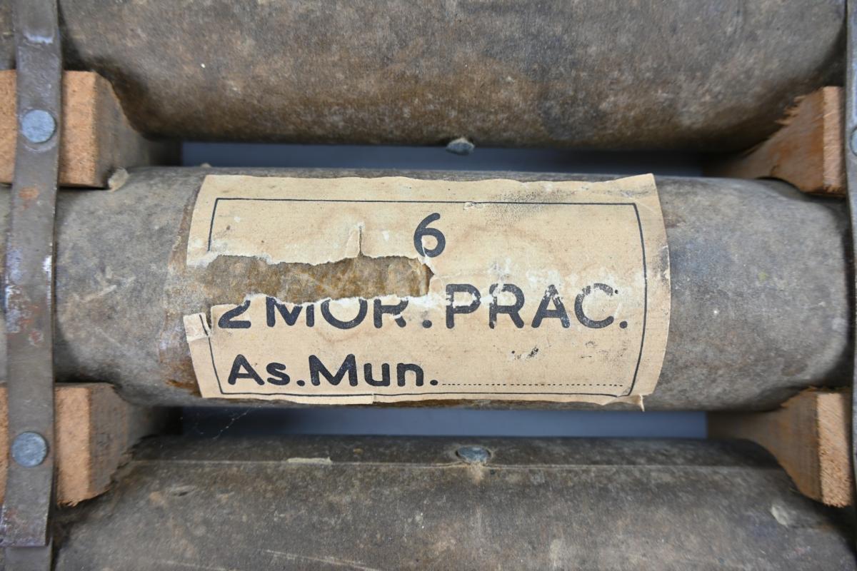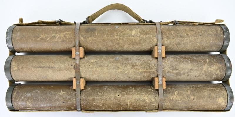 The Cardboard Tube carrier was intended to hold three 2 inch mortar rounds. The carrier comes with the paper label tag still attached.