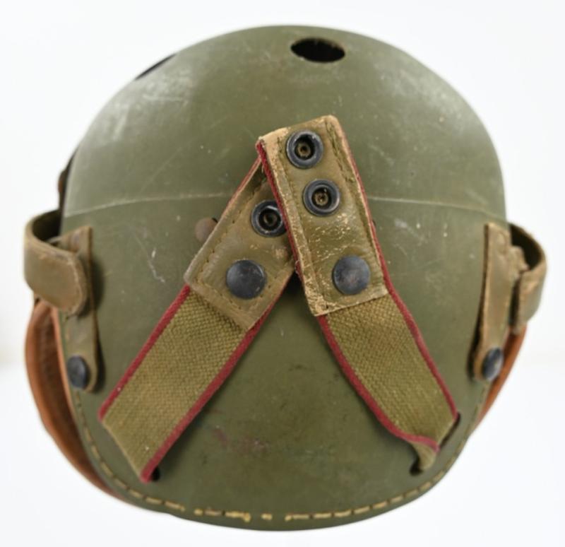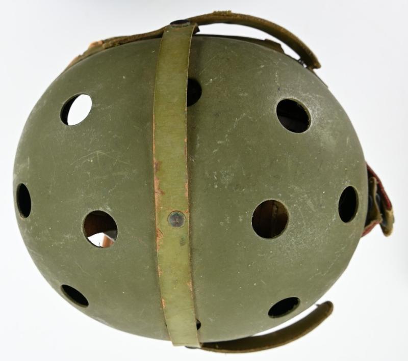 In a very good condition a US WW2 Tanker Helmet. The helmet is light used and has small traces of storage. Inside it's nicely maker marked by Rawlings and comes in size 7 3/8''. A stunning tanker helmet!