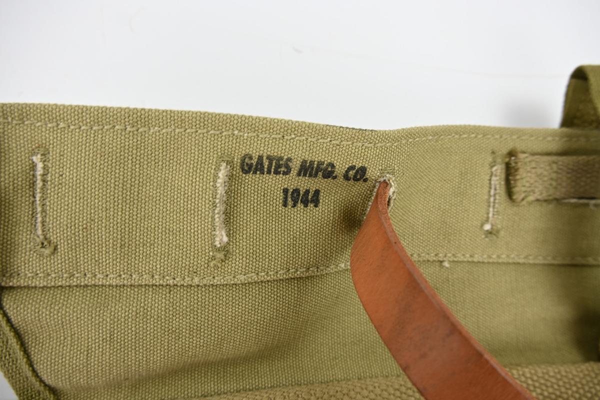 The pack carrier is made by Gates Mfg. Company and dated 1944.