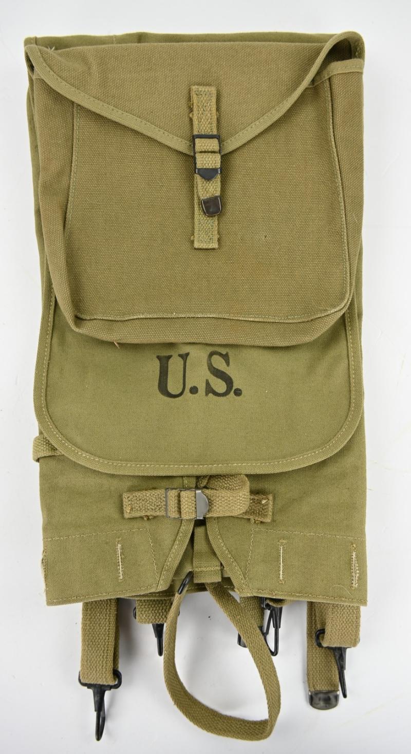 In a stunning mint condition a US WW2 M-1928 Haversack with Pack Carrier.