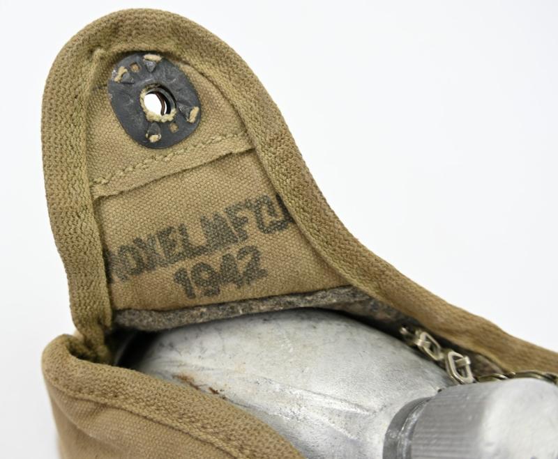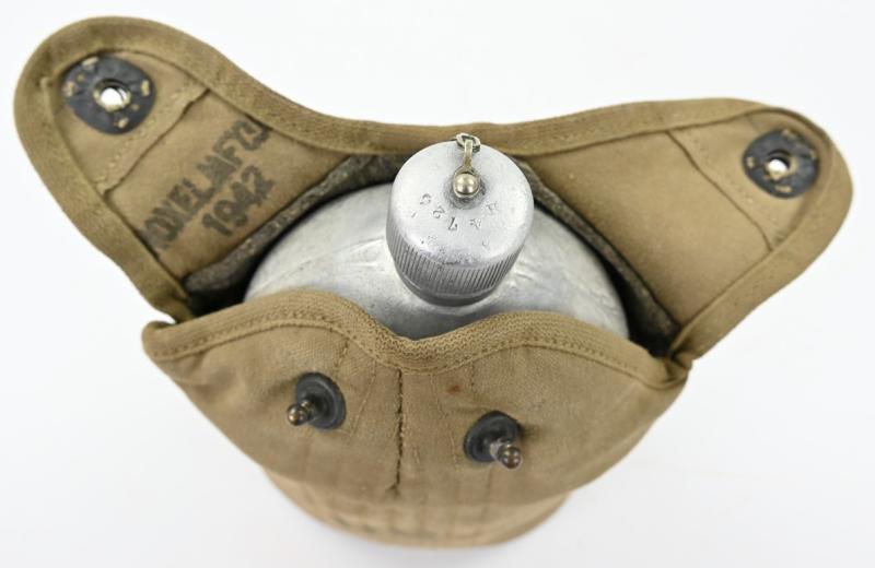 In a very good condition a US M-1942 Canteen. The canteen cover is nicely maker marked and dated 1942. It comes with a maker marked canteen and cup and are also 1942 dated!