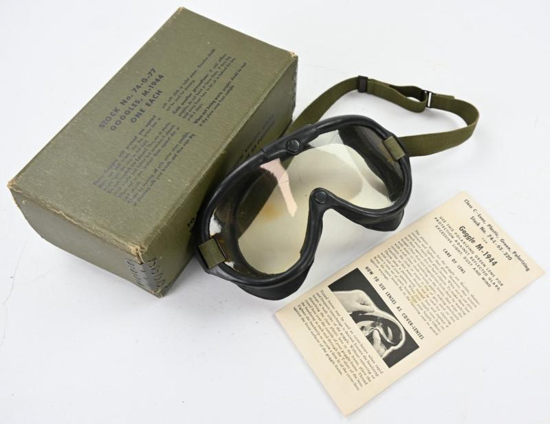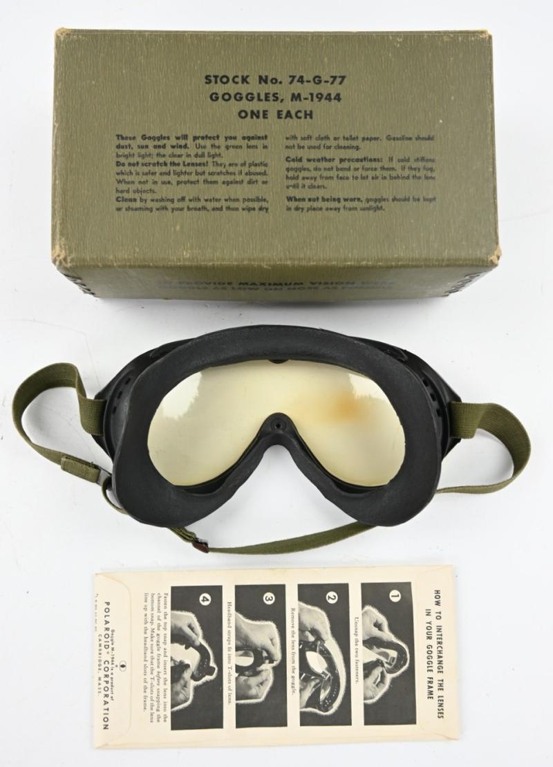 In a very good condition a US/USN WW2 M-1944 Flying Goggles in Case. The polaroid goggles comes with spare glases, instruction and in a supple condition.