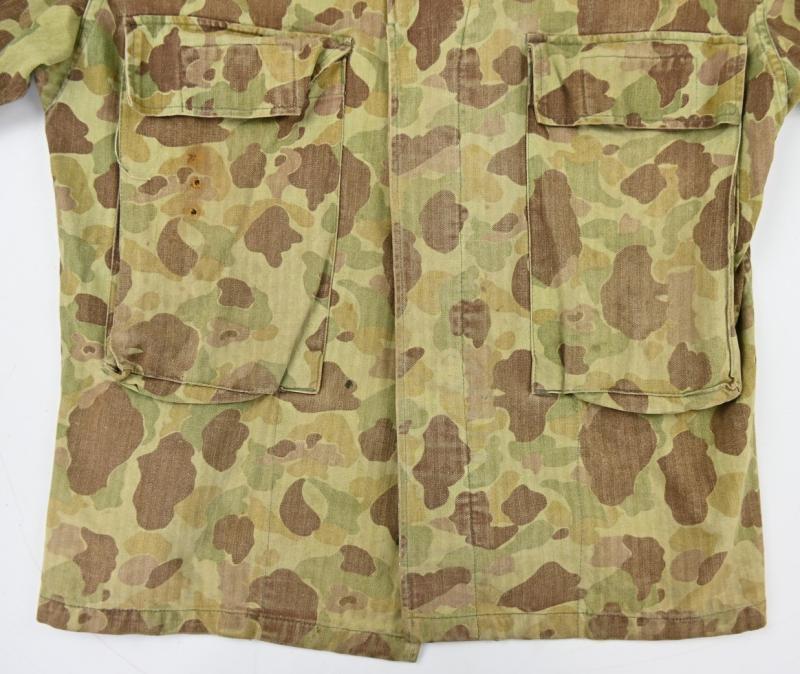 In a good condition a US WW2 HBT (Herringbone Twill) Camouflage jacket.