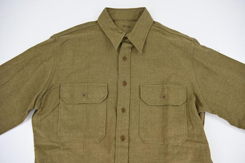 In a mint condition a US WW2 Enlisted Men Wool Shirt. The shirt comes in a good mannequin size 16-33'' and is never used. The shirt comes with the original oil label dating the shirt 1941 (!) Impossible to upgrade!