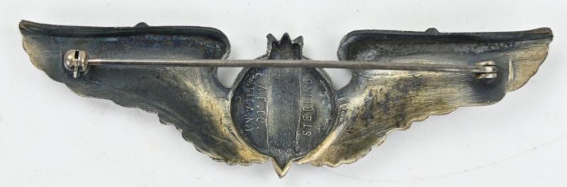 In a very good condition a stunning US Army Air Forces bombardier wing in sterling silver made and marked by A.E. Company. It comes with a functional needle and catch. great example!
