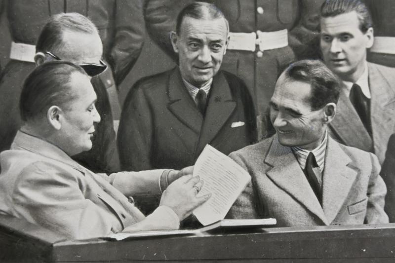 Allied Nuremberg War Trail Press Photo 'Göring & Hess'