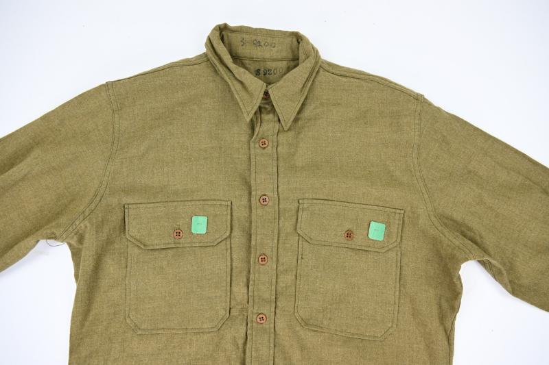In a very good condition a US WW2 Wool Shirt for Enlisted Men. The shirt comes in a good mannequin size 16-32 and is complete with the orginal oil label inside dating the shirt to 1942. A very stunning shirt!